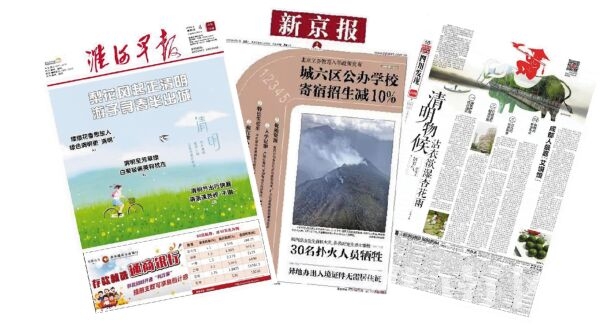 淮河早報清明節(jié)封面入選全國創(chuàng)意版面
