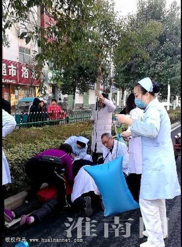 近日上午,市長(zhǎng)熱線員工楊娜娜在家人陪伴下前往田家庵區(qū)公園街道社區(qū)衛(wèi)生服務(wù)中心進(jìn)行常規(guī)產(chǎn)檢。剛檢查結(jié)束走出醫(yī)院大門,就看見(jiàn)綠化帶旁一中年女子在大聲呼救,楊娜娜和其家人急忙上前,發(fā)現(xiàn)一老人暈倒在社區(qū)醫(yī)院附近的綠化帶邊,不省人事。聞?dòng)嵍鴣?lái)的社區(qū)醫(yī)院醫(yī)護(hù)人員查看病情后,立即進(jìn)行靜脈注射和心肺復(fù)蘇等急救措施,告知患者家屬趕快撥打120急救電話。由于出門比較急,女子出門未帶電話,楊娜娜家人見(jiàn)狀立即掏出手機(jī)幫其撥打120,而楊娜娜此時(shí)也加入救助行列。她一手護(hù)住腹中的孩子,一手高舉著吊瓶,直到家人打完電話換下她。數(shù)九寒冬,路面濕滑,社區(qū)醫(yī)院醫(yī)護(hù)人員已無(wú)暇顧及,跪在冰冷地面持續(xù)進(jìn)行心肺復(fù)蘇急救,其中一位女醫(yī)生因體力不支,險(xiǎn)些昏厥過(guò)去,但依然不放棄搶救。時(shí)間一分一秒過(guò)去,120急救車因醫(yī)院附近道路施工等原因,直到20分鐘后才過(guò)來(lái),而四周圍觀群眾則自發(fā)結(jié)隊(duì)攔住對(duì)向車輛,以便救護(hù)車順利到達(dá),為患者爭(zhēng)取更寶貴時(shí)間。