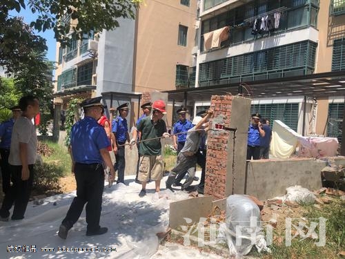 圖:執(zhí)法隊員冒著高溫天氣有序拆除違建