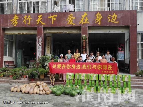 “我們此次捐贈了40箱小丑梨,200多公斤的西瓜和150公斤的南瓜,總價值近2000元,為老人送上一點心意!敝芫弥杀硎,老人屬于社會上的弱勢群體,一直是他們關心牽掛的對象,也希望社會上有更多的愛心人士來關心關愛老人,讓社會大家庭充滿愛。