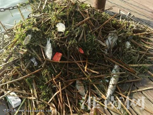 走近這堆雜草才發(fā)現(xiàn),混合在雜草中有幾條死亡的半尺多長的小魚和一條半米長的大魚,這些魚的魚鱗有的已經(jīng)脫落,看來死了有一段時(shí)間了,但是因?yàn)槌霈F(xiàn)在步道上,附近居民都紛紛猜測(cè)起來。“平時(shí)這里有釣魚的,會(huì)不會(huì)是釣魚的不要了!薄安粫(huì)的,這么大條魚,怎么可能不要了,會(huì)不會(huì)是電魚的?”圍觀群眾議論紛紛。隨后,中央公園的保潔人員趕到把雜草和魚都清運(yùn)了出去。