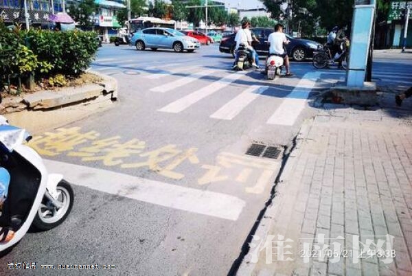 淮河早報、淮南網(wǎng)記者在該路口東南角看到,在由南往北方向的非機動車道上,一個半小時內(nèi),非機動車行駛在該路口后,遇到等紅燈時,很少有主動停在施劃的停車線內(nèi)等候的,很多非機動車輛都“習慣性”地涌向路口。有的是行駛至路口后看到綠燈結(jié)束,就直接停在路口;有的則是看到是紅燈了,依然越過停車線,停在路口的斑馬線上;在非機動車多的時候,很多都圍在路口邊,有的甚至停在了直行和轉(zhuǎn)彎車輛行駛經(jīng)過的地方。