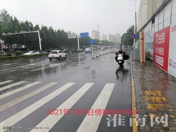 中午11時36分,天空突然下起了大雨,此時正是下班的高峰時期,朝陽中路與淮舜路交叉口也聚集了大批下班人群。在由東向西的西側車道上淮河早報、淮南網(wǎng)記者看到,交警部門用隔離護欄將機動車道與非機動車道分開,并在護欄上安裝了非機動車道的標識,可仍有不少非機動車主非要駛入機動車道,與機動車搶道。在一個小時的蹲守中,淮河早報、淮南網(wǎng)記者發(fā)現(xiàn),每當紅燈轉為綠燈后,西北角的這處標識牌就成了非機動車的分界線,大部分非機動車按照規(guī)定駛進了非機動車道,安全行駛;而小部分非機動車我行我素,仍在機動車道上暢行。