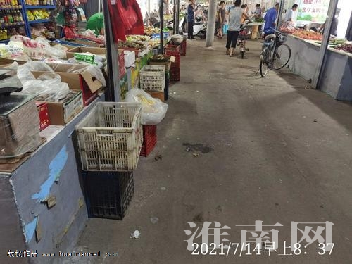 淮河早報(bào)、淮南網(wǎng)記者在田東菜市場內(nèi)來回走了幾趟發(fā)現(xiàn),整個(gè)菜市場區(qū)域劃分明確,南段主要是蔬菜區(qū),北段主要是干貨區(qū),中間是鮮肉,東面全都是活禽和水產(chǎn)。在蔬菜區(qū),攤位擺放還算整潔,大多數(shù)攤主都把蔬菜擺放在臺面上,其它菜放在攤位里面的筐里。偶爾有個(gè)別攤販把菜筐放在攤位外的,也有把蔬菜直接放在地上的。在干貨區(qū),出攤經(jīng)營的現(xiàn)象則比較多。每家經(jīng)營戶都把筐堆在攤位外,有的筐里有雞蛋、干貨等,有的則是空筐;有的經(jīng)營戶堆放兩三個(gè)筐,有的攤位前堆得滿滿當(dāng)當(dāng)。其中有經(jīng)營戶看到記者正在拍攝,立刻把自己的筐逐一收回到攤位內(nèi)。