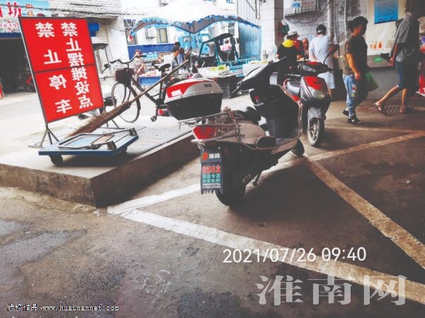 土壩孜菜市場(chǎng)位于八公山區(qū)土壩孜街道轄區(qū)內(nèi),緯六路北側(cè),是一個(gè)呈南北方向的長(zhǎng)條式室內(nèi)菜市場(chǎng),周邊緊鄰居民區(qū)。7月26日上午9時(shí)27分,淮河早報(bào)、淮南網(wǎng)記者在土壩孜菜市場(chǎng)中段出入口東邊看到,緊挨著菜市場(chǎng)的商鋪門口并沒有劃停車位,但此時(shí)還是停放了一排電動(dòng)車。在菜市場(chǎng)中段出入口西側(cè)路邊,同樣也停放了幾輛三輪車。
