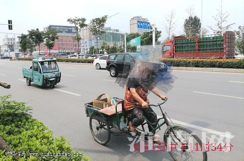 8時許,淮河早報、淮南網(wǎng)記者在這一路口東北角往東側(cè)方向進(jìn)行觀察,發(fā)現(xiàn)許多非機(jī)動車對機(jī)動車道十分“偏愛”,不管是自行車、電瓶車還是三輪摩托車,紛紛在機(jī)動車道上隨意騎行,飛速行駛的機(jī)動車從他們身邊呼嘯而過,讓人看著都捏了一把汗。8時15分至8時25分之間,約有十多輛非機(jī)動車從此路段駛過,8時16分,一輛摩托車緊跟著多輛小貨車疾馳在機(jī)動車道上,8時21分,一位騎著淮小綠的大爺在路口被執(zhí)勤交警攔了下來并進(jìn)行了處罰,“您騎著自行車在機(jī)動車道上太危險了,下次可不能再這樣了!”在交警的耐心解釋下,大爺表示不會再出現(xiàn)這種情況了。