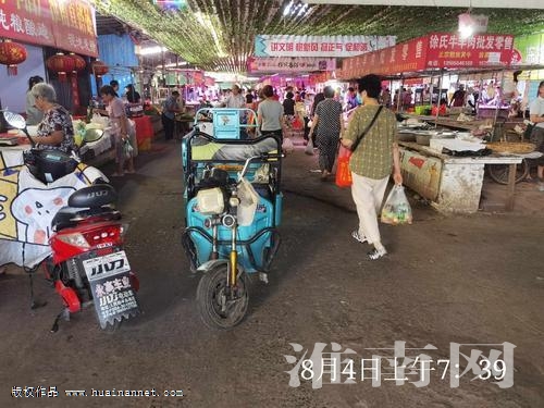 鐘郢農(nóng)貿(mào)市場內(nèi)部比較寬敞,不少市民騎著電動車或三輪車進入市場內(nèi)買菜送菜。有的市民看到中意的菜,就隨意地把車停在路中間,給來往行人和車輛帶來不便,F(xiàn)場,淮河早報、淮南網(wǎng)記者看到一輛三輪車停在路中間,擋住了后方的另一輛車。