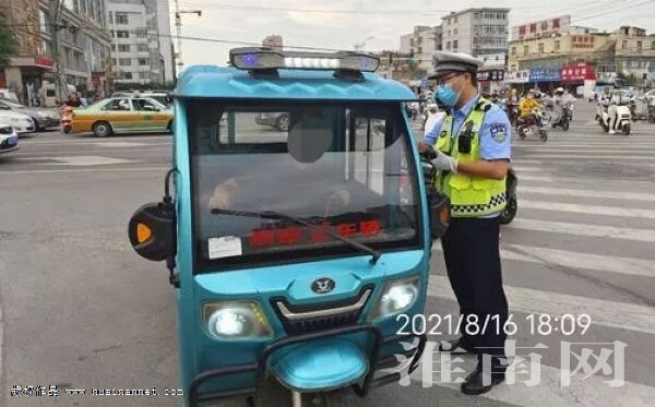 18時08分,交警攔下一輛橫穿馬路的電動三輪車并當場對車輛駕駛?cè)诉M行了批評教育。