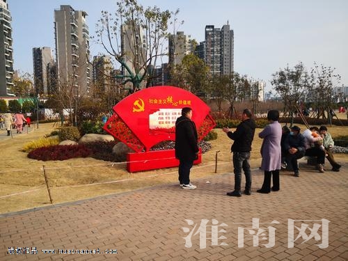 春節(jié)期間,淮河公園里游人增多,游客們在游玩的同時,還站在公園的社會主義核心價值觀宣傳欄前觀看,既放松心情,又受到了教育。(記者 李鈞 攝影報(bào)道)