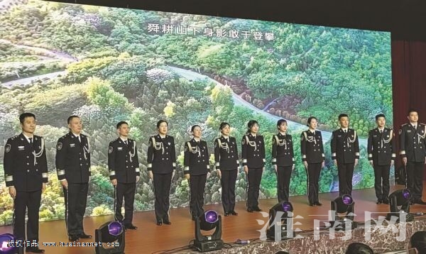 儀式中穿插了豐富多彩的文藝演出,小合唱《從警贊歌》唱得大家心潮澎湃,熱淚盈眶;舞蹈《警營律動(dòng)》跳出了不一樣的警營風(fēng)采;情景劇《民警老陳的退休生活》讓人們開懷大笑的同時(shí)凝神思索警察的初心與信念;詩朗誦《筑牢忠誠警魂 護(hù)航平安淮南》誦出了公安民警的滿腔熱血……