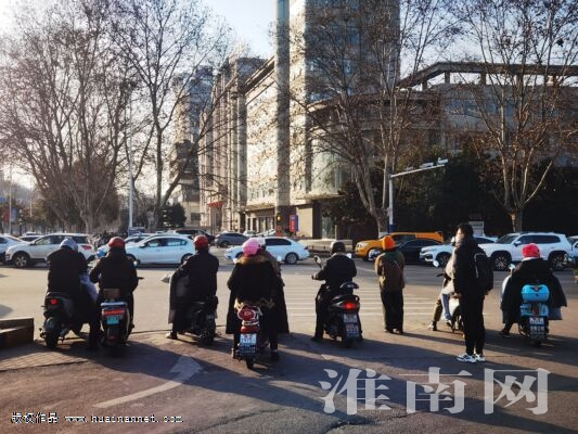 在城市道路上、背街小巷里,都能看到市民騎電動(dòng)自行車戴頭盔出行。洞山中路被稱為淮南的“文明大道”,1月31日早上,在出行高峰時(shí)段,淮河早報(bào)、淮南網(wǎng)記者在“文明大道”旁觀察看到,在非機(jī)動(dòng)車道上騎行的電動(dòng)自行車駕駛?cè)硕甲杂X佩戴著頭盔。在洞山中路與廣場(chǎng)南路交叉口,人員車輛匯集于此,在路口等紅燈的人群中,不僅騎行者佩戴頭盔,坐在后面的人也戴著頭盔。