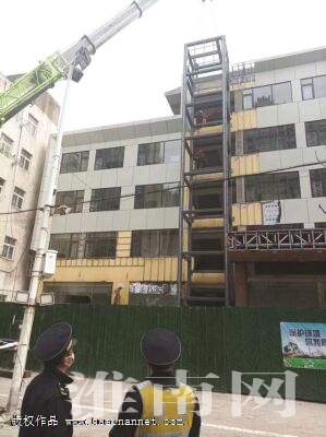 (記者 王偉 攝影報道)近日,田家庵區(qū)城管局對于一處未經(jīng)審批,私自加裝的外置電梯進行了拆除,及時制止了違法行為。