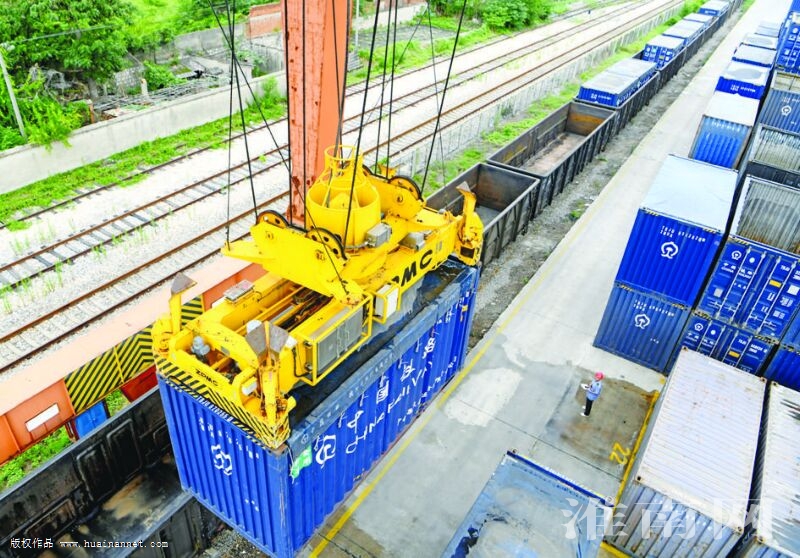 當(dāng)前正值全國(guó)夏糧收購(gòu)?fù)荆袊?guó)鐵路上海局集團(tuán)有限公司淮南西站、蚌埠貨運(yùn)中心積極對(duì)接當(dāng)?shù)丶Z食收儲(chǔ)企業(yè),不斷優(yōu)化運(yùn)輸方案,加速車輛周轉(zhuǎn),提高糧食運(yùn)輸效率,保障淮河兩岸優(yōu)質(zhì)小麥運(yùn)往全國(guó)各地,實(shí)現(xiàn)糧食運(yùn)輸過(guò)程“零損耗”。據(jù)悉,6月份以來(lái),該站運(yùn)輸夏糧小麥達(dá)960車、6.2萬(wàn)噸。 圖為蔡家崗站貨物裝車場(chǎng)內(nèi),裝滿小麥的集裝箱吊裝進(jìn)鐵路車廂,通過(guò)鐵路運(yùn)往廣東。(記者 陳 彬 攝)