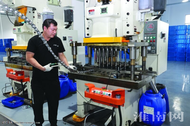 安徽信正機(jī)電科技有限公司位于毛集實驗區(qū)鵬程天下科創(chuàng)城,主要從事圓柱鋰電池鋼殼加工生產(chǎn)和鋰電池銷售,目前已建成圓柱鋰電池鋼殼加工線30條,解決近百名農(nóng)民工在家鄉(xiāng)就業(yè)。圖為車間生產(chǎn)線場景。(記者 張 越 攝)