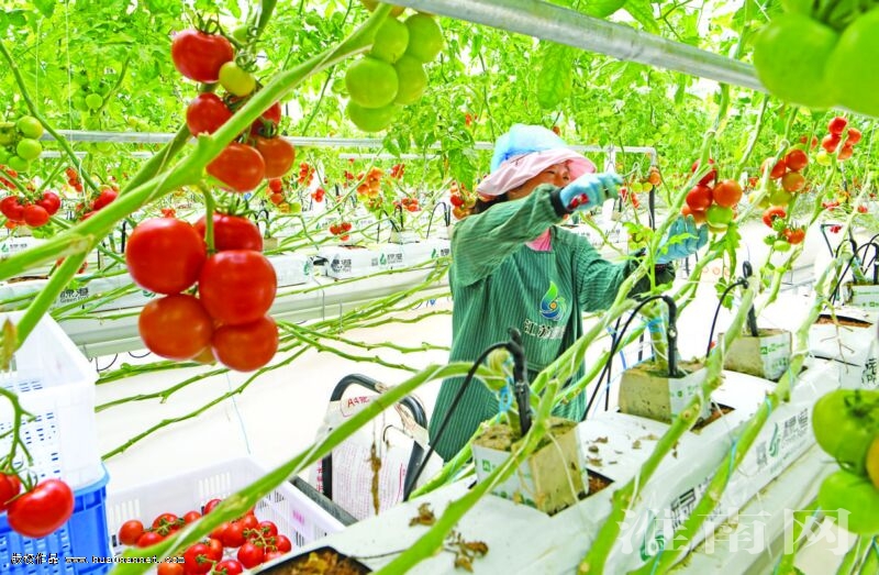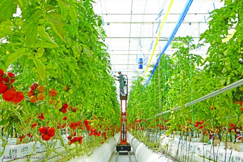 位于毛集實驗區(qū)的淮南市智慧農(nóng)業(yè)科技發(fā)展有限公司園區(qū)占地約400畝,建筑面積8萬余平方米,是一家集現(xiàn)代農(nóng)業(yè)育苗、生產(chǎn)、加工、銷售、培訓、研學、文旅與休閑采摘為一體的現(xiàn)代農(nóng)業(yè)高科技示范園區(qū)。該智慧農(nóng)業(yè)園區(qū)2023年9月建成投產(chǎn)以來,日均采摘新鮮果蔬5000公斤,科技創(chuàng)新助力設施農(nóng)業(yè)走上了高效發(fā)展“快車道”。圖為園區(qū)工人在整理番茄秧、采摘西紅柿。 (記者 陳 彬 攝)