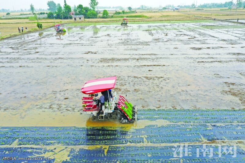 “三夏”時(shí)節(jié),鳳臺(tái)縣新集鎮(zhèn)常廟村瑞耕農(nóng)機(jī)合作社夏種現(xiàn)場(chǎng),農(nóng)機(jī)手進(jìn)行水稻覆膜機(jī)插秧作業(yè),該技術(shù)在機(jī)插秧的同時(shí)覆蓋田間防草降解膜,實(shí)現(xiàn)節(jié)水、節(jié)肥、節(jié)藥有機(jī)農(nóng)業(yè)生產(chǎn)標(biāo)準(zhǔn)。近日,我市舉行水稻“機(jī)拋秧+機(jī)插秧”智能作業(yè)演示會(huì),通過農(nóng)機(jī)新技術(shù)推廣、水稻新品種示范種植,實(shí)現(xiàn)糧食生產(chǎn)提質(zhì)增效。 (記者 陳 彬 攝)