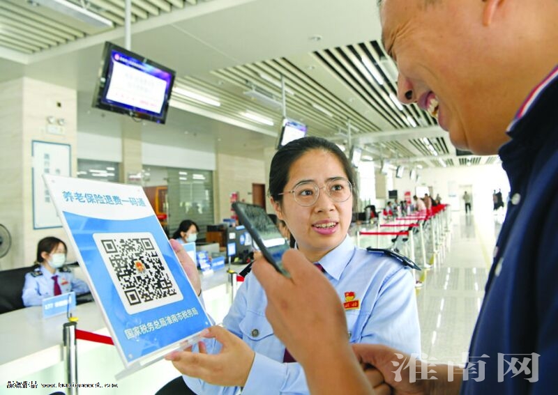 今年以來,市稅務(wù)局聚焦“高效辦成一件事”,會同人社、醫(yī)保等部門“一窗聯(lián)辦”,將養(yǎng)老保險退費(fèi)類型、材料清單融入“養(yǎng)老保險退費(fèi)一碼通”,繳費(fèi)人通過手機(jī)掃碼即可實現(xiàn)退費(fèi)申請?zhí)顚、資料提交、在線簽章一次完成,方便全市參保人員辦理業(yè)務(wù)。圖一、在市政務(wù)服務(wù)大廳稅務(wù)窗口,稅務(wù)工作人員向繳費(fèi)人介紹“養(yǎng)老保險退費(fèi)一碼通”業(yè)務(wù)。圖二、工作人員展示“養(yǎng)老保險退費(fèi)一碼通”申請退費(fèi)手機(jī)頁面,繳費(fèi)人通過掃碼實現(xiàn)養(yǎng)老保險退費(fèi)全程掌上辦。(記者 陳彬 攝)