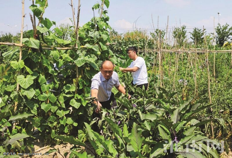 圖為張文濤(左一)在打理“安新菜園”。(記者 蘇國義 攝影報(bào)道)