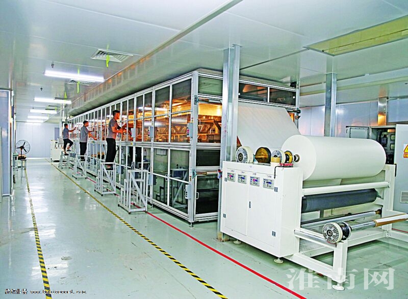 8月22日,位于毛集經濟開發(fā)區(qū)的國納高新科技(安徽)有限公司車間內,三條生產線正在不停運轉。該公司是一家致力于納米纖維科技領域,集研發(fā)、生產、銷售于一體的高新技術企業(yè)。今年1月,項目一期年產150萬米靜電紡絲納米纖維防水透氣膜及800噸納米級車用濾材下線,計劃一年內擴大到14條生產線,三年內做到20條生產線,實現500萬米的穩(wěn)定量產。(記者 倪 軍 攝)