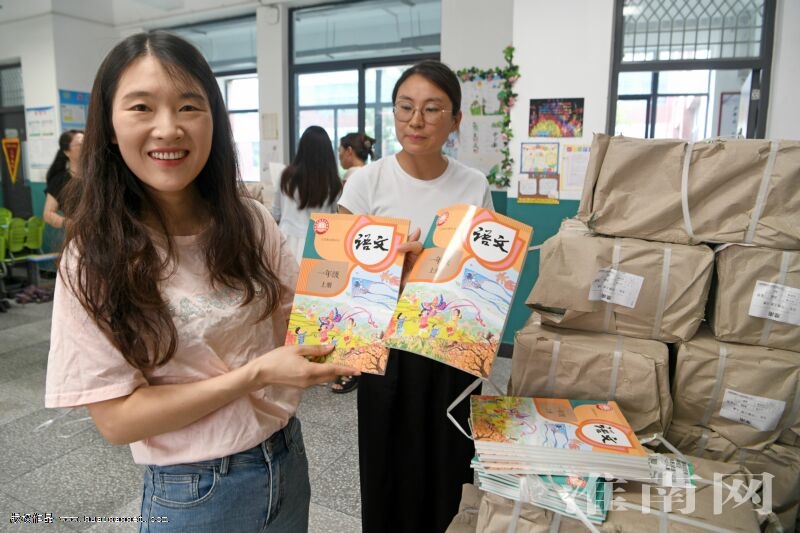 秋季開學(xué)在即,我市各學(xué)校落實新教材分發(fā)、美化校園環(huán)境、加強教師培訓(xùn),為新學(xué)期的到來做好準(zhǔn)備。圖為近日淮師附小山南校區(qū)老師整理新教材。(記者 陳 彬 攝)