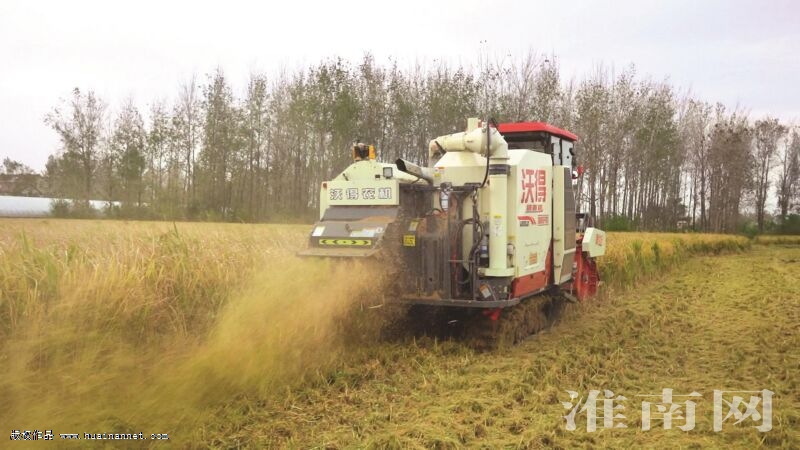 在新集鎮(zhèn)“省農(nóng)民合作社示范社”——鳳臺縣永冠糧食種植專業(yè)合作社,其托管的一片金色稻田里,呈現(xiàn)一派熱火朝天的秋收場景,合作社負(fù)責(zé)人朱冠樂正組織機(jī)械進(jìn)行收割。只見一輛輛聯(lián)合收割機(jī)來回穿梭,前面“吃進(jìn)去”水稻,后面將粉碎的秸稈均勻拋撒還田,為下一季播種做好準(zhǔn)備。一輛運(yùn)糧車在田邊守候,待裝滿后,將收獲的稻谷運(yùn)往合作社倉庫進(jìn)行烘干。