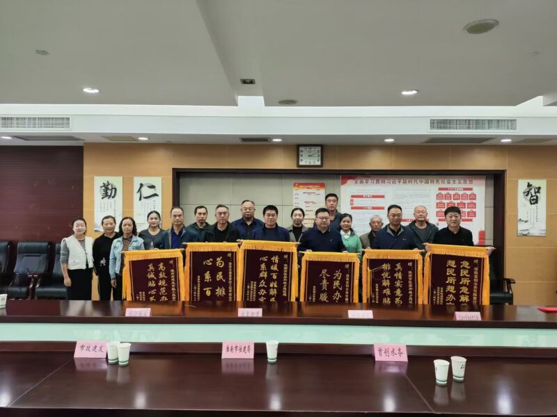 為表示感謝,近日,龍泉街道及信苑社區(qū)、信誼物業(yè)和10多名信誼四季城小區(qū)業(yè)主代表制作了六面錦旗,分別送給市住建局、淮南首創(chuàng)水務(wù)有限責(zé)任公司、市建發(fā)市政工程有限公司。