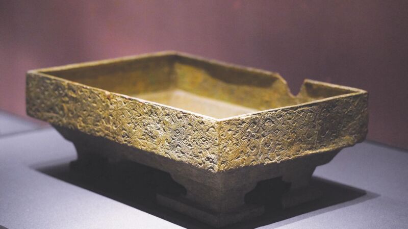 這類青銅器的名稱中很多為生僻字,可能大家對它們的讀音都不是很熟悉。如鬲(音同力)為古代煮飯用的炊食器,其“三足鼎立”且為中空,以便食物加熱。斝(音同鉀)是一種用來溫酒的器皿。甗(音同演)可用來烹飪、加熱,同時也是禮器。盉(音同和)是一種古代的盛酒器和盛水器,聰明的古人也會用它來調(diào)和酒味的濃淡。另外,還有一種與糧食息息相關(guān)的青銅器名為簠(fǔ),安徽楚文化博物館的館藏文物“王后六室銅簠”就是這樣一件比較有代表性的青銅器。