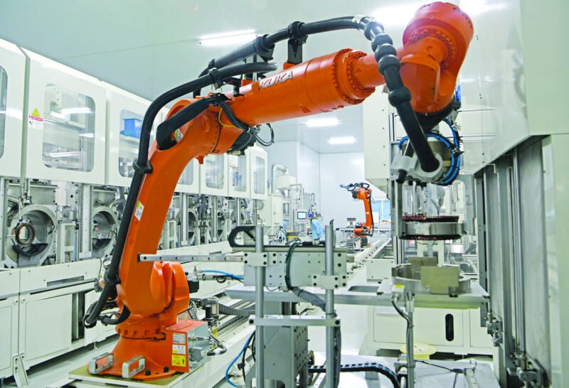 新年新氣象,我市加快新能源汽車產(chǎn)業(yè)集群發(fā)展,各企業(yè)一邊忙生產(chǎn),一邊擴產(chǎn)能,新年開局拼勁足。目前,淮南已聚集全產(chǎn)業(yè)鏈上下游企業(yè)400余家。圖為位于鳳臺縣電子智造產(chǎn)業(yè)園內(nèi)的安徽泰來動力科技有限公司機器手生產(chǎn)新能源汽車專用電機。