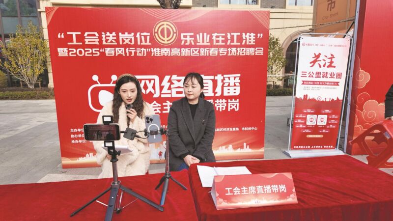 2月16日下午,“工會送崗位 樂業(yè)在江淮”暨2025“春風(fēng)行動”淮南高新區(qū)新春專場招聘會在春申里文旅街區(qū)舉行。
