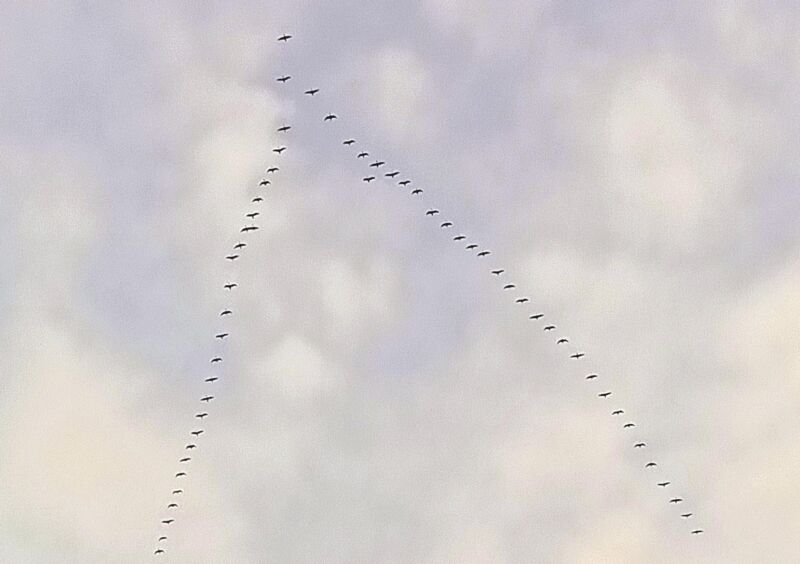 而當“頭雁”感到疲倦時,會退到隊伍兩側,由另一只經(jīng)驗豐富的大雁接替其位置。雁群在飛行一段時間后,還會交換左右位置,以便兩側翅膀都能利用低壓區(qū)來減輕疲勞。這種巧妙的飛行方式,無疑是大自然中群體生活的智慧。