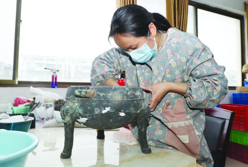 新修訂版《中華人民共和國文物保護(hù)法》于3月1日起正式實(shí)施,進(jìn)一步提出國家鼓勵(lì)開展文物保護(hù)的科學(xué)研究,推廣先進(jìn)適用的文物保護(hù)技術(shù),提高文物保護(hù)的科學(xué)技術(shù)水平。圖為安徽省文物考古研究所壽縣工作站工作人員在精心修復(fù)文物。