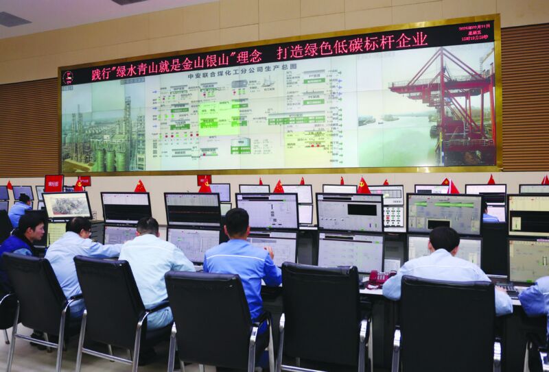 近年來,中安聯(lián)合煤化有限責任公司積極踐行“綠水青山就是金山銀山”理念,以優(yōu)化管理、創(chuàng)新驅(qū)動、數(shù)智發(fā)展引領(lǐng)企業(yè)轉(zhuǎn)型,大力推進煤炭清潔高效利用,不斷夯實綠色低碳發(fā)展的根基,打造煤化工行業(yè)能效標桿企業(yè)。圖為該公司工作人員進行生產(chǎn)調(diào)度。