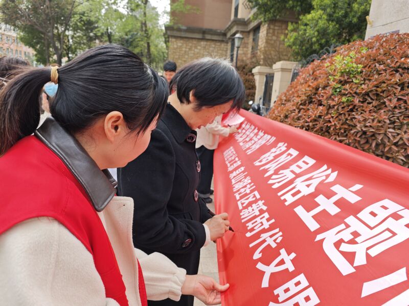 為傳承傳統(tǒng)文化、倡導(dǎo)文明祭掃,淮南高新區(qū)三和鎮(zhèn)泉山湖社區(qū)近日組織開展“倡導(dǎo)文明祭祀 共筑綠色清明”系列主題宣傳活動(dòng),引導(dǎo)社區(qū)居民以低碳環(huán)保方式寄托哀思。圖為社區(qū)居民在主題宣傳條幅上簽名。
