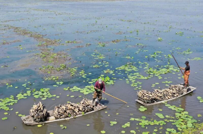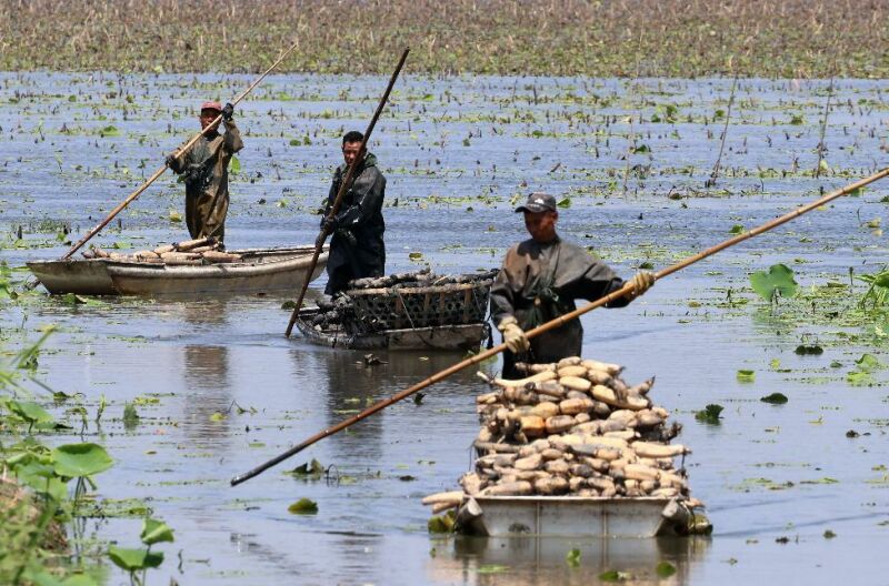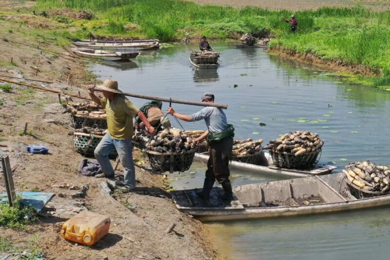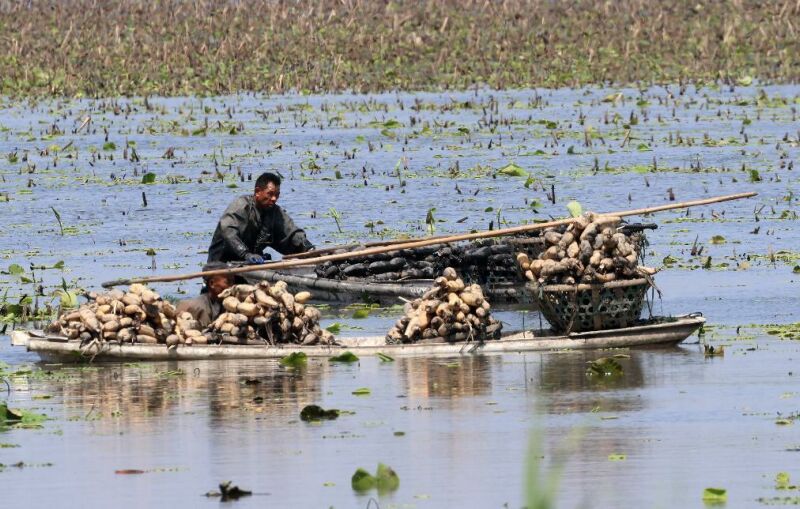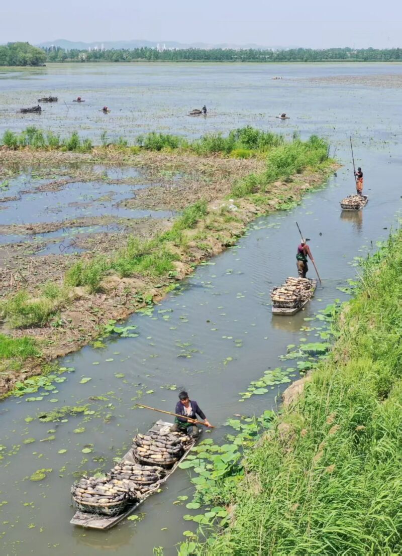 首頁 > 圖片新聞 > 初夏采藕十澗湖 辛勤勞作換荷香