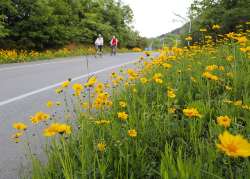 春夏之交,淮南舜耕山東環(huán)山路草花盛放,大片金雞菊拉開夏季花海的帷幕。微風吹過,這些金黃的花瓣搖曳生姿,呈現(xiàn)出無限生機。
