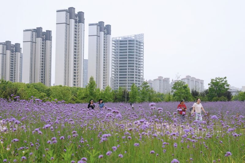 盧本義是淮南高新區(qū)的一名公園保潔人員。他說,今年3月份,他和幾十位同事,彎著腰在E水系帶狀公園里忙了兩個(gè)多星期才把這些柳葉馬鞭草全部栽種完,大家累得腰酸腿疼,晚上睡覺都輾轉(zhuǎn)難眠。栽種完成后,他們的工作轉(zhuǎn)入養(yǎng)護(hù),澆水、施肥、除草……在他們的精心呵護(hù)下,數(shù)十畝的柳葉馬鞭草連同撒播的月見草才逐漸長大并盛開出美麗的花朵。