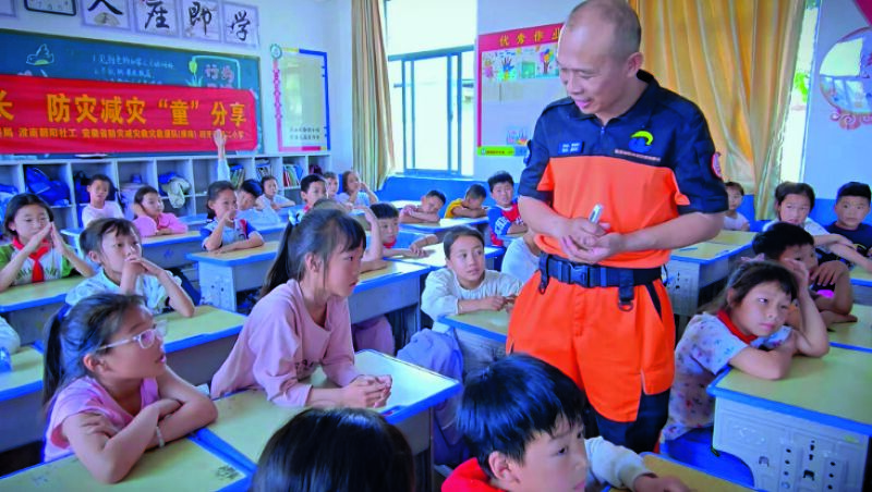 救援隊(duì)專業(yè)人員通過(guò)提問(wèn)引導(dǎo)孩子們掌握避險(xiǎn)自救方法