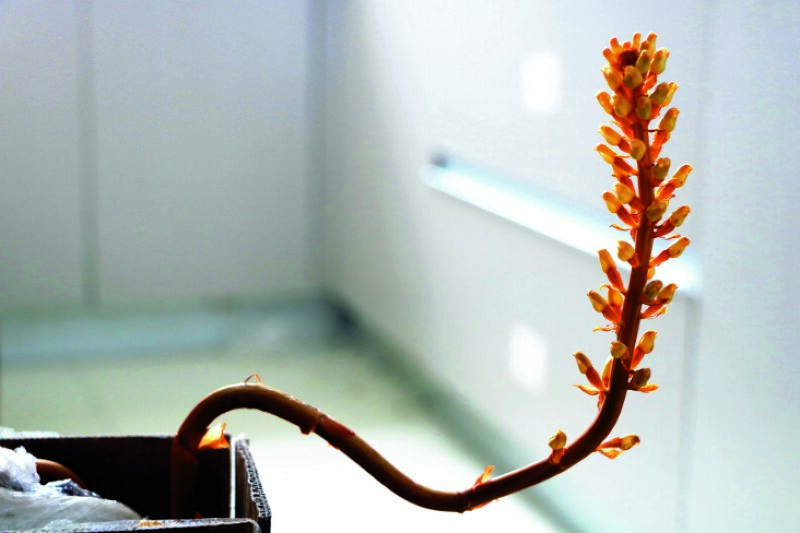 還真是!王女士這才想起來,是被自己遺忘在儲物架里的天麻開了花,花型奇特,從沒見過。