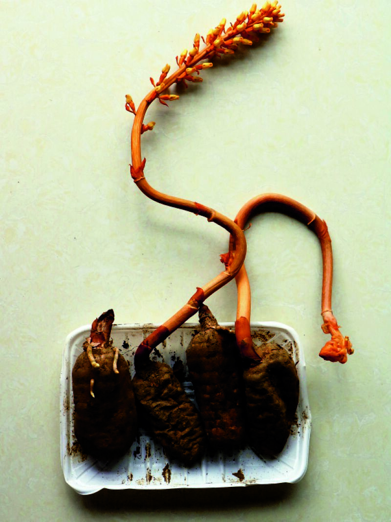 原來,去年秋冬之際,王女士從視頻里得知正是天麻收獲季,山民正在采收,有的山民還開起了直播。王女士忍不住從直播間里買了些剛采收的新鮮天麻,收到快遞后,就拿出了幾個洗凈后煮雞湯,順手將快遞包裝盒連同剩下的天麻塞到廚房儲物架里,時間一長便忘了,沒想到現(xiàn)在天麻開出了花。