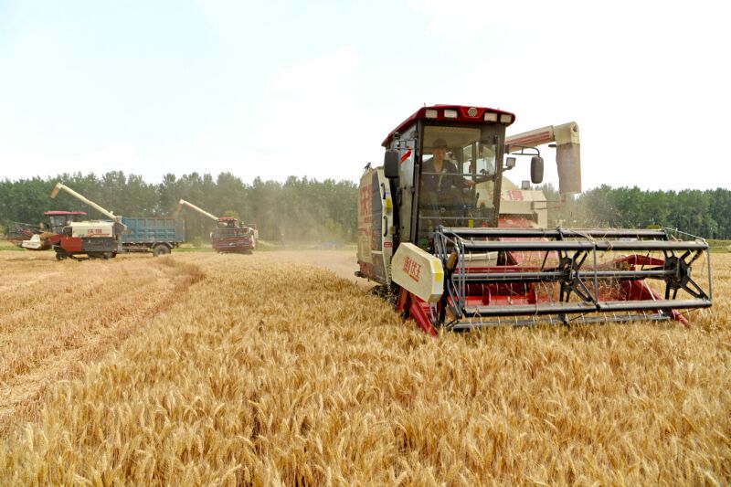 麥?zhǔn)諘r(shí)節(jié),各地農(nóng)民搶抓農(nóng)時(shí)搶收小麥,確保顆粒歸倉(cāng)。