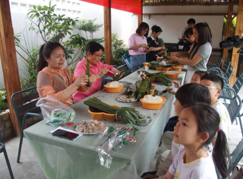 “米之源”的迎端午包粽子活動(dòng)分設(shè)兩個(gè)地點(diǎn),一處位于舜耕山麓的休閑小院,另一處在山南英倫聯(lián)邦小區(qū)進(jìn)行,現(xiàn)場(chǎng)布置了端午文化體驗(yàn)區(qū);顒(dòng)伊始,主持人娓娓道來(lái)端午節(jié)的起源和屈原的愛(ài)國(guó)故事,為現(xiàn)場(chǎng)觀眾送上節(jié)日祝福。隨后進(jìn)行的端午節(jié)知識(shí)搶答環(huán)節(jié)中,孩子們爭(zhēng)先恐后地舉手作答,歡笑聲中收獲香包、端午扇等精美獎(jiǎng)品。最熱鬧的包粽子比賽隨即展開(kāi),參與者們圍坐在擺滿糯米、粽葉和蜜棗的桌前,靈巧地將翠綠粽葉卷成漏斗狀,填入晶瑩的糯米和紅潤(rùn)的蜜棗,仔細(xì)包裹壓實(shí)后,用棉線纏繞固定,一個(gè)個(gè)棱角分明的粽子便在歡聲笑語(yǔ)中誕生,現(xiàn)場(chǎng)洋溢著濃濃的節(jié)日氛圍。