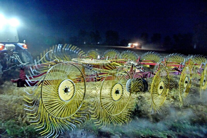 “趕得及趕得及!估計(jì)還有三四天就能全部收完了!”麥田旁,短暫的晚飯時(shí)間后,徐懷彪與徐棒棒心照不宣地點(diǎn)點(diǎn)頭,各自麻利地鉆進(jìn)兩臺(tái)收割機(jī)駕駛室,轟鳴的機(jī)器聲很快再次響起。夜幕降臨,一直陪伴他們的,是收割機(jī)上方耀眼的燈光,一輛輛摟草機(jī)和打捆機(jī)緊隨其后,忙碌不停。