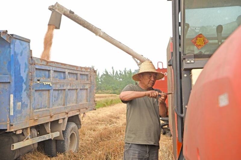 “這幾天我們天天都關(guān)注天氣預(yù)報(bào),周末要下雨,所以現(xiàn)在每天都在搶收,一定要在周末之前把麥子全部收完!”徐懷彪抓了一把麥粒告訴記者,“現(xiàn)在的麥粒又亮又飽滿,淋雨后容易霉變,即便是烘干后效果也沒那么理想。家里的兩臺(tái)大型收割機(jī)目前連軸轉(zhuǎn),每天能收200畝麥子,連著好幾天每晚都忙到10點(diǎn)左右!