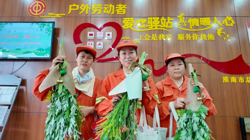 活動(dòng)還特別準(zhǔn)備了暖心粽子,分發(fā)給每一位參與者。小小的粽子承載著對(duì)戶外勞動(dòng)者辛勤付出的感謝與敬意。一位環(huán)衛(wèi)工人感動(dòng)地說(shuō):“今天不僅學(xué)會(huì)了做艾草花束,還收到粽子,心里特別溫暖。”