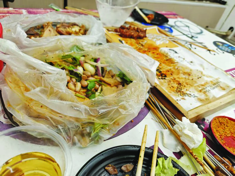 端午假期,記者走訪我市部分餐廳、夜市大排檔發(fā)現(xiàn),絕大多數(shù)消費者能做到文明用餐,但也有個別市民存在“舌尖上的浪費”。圖為在一家大排檔,食客已離去,桌面上卻殘留了不少食物。(記者 攝)