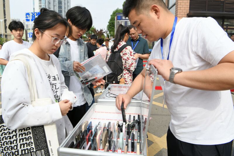 考生將手機(jī)臨時(shí)存放在考場(chǎng)外的手機(jī)存放箱。