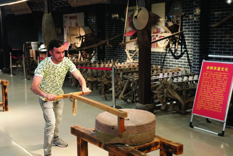 “Aamzing!”“很有意思!這是中國(guó)獨(dú)有的技藝!”當(dāng)日上午,外籍學(xué)子們齊聚壽縣八公山豆腐小鎮(zhèn),當(dāng)看到大豆在石磨的轉(zhuǎn)動(dòng)下研磨出漿時(shí),一道道驚嘆聲不絕于耳。在工作人員的帶領(lǐng)下,外籍學(xué)子們先是參觀中國(guó)豆腐文化展覽館,了解豆腐的起源與發(fā)展,隨后在豆腐文化體驗(yàn)館親手體驗(yàn)了選豆、浸泡、磨漿等傳統(tǒng)豆腐制作的關(guān)鍵工序。