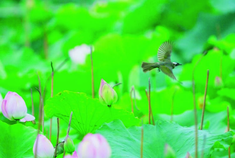 六月的龍湖公園,粉荷初綻,碧葉連天,一只靈動的白頭鵯成為這幅靜美畫卷中的點(diǎn)睛之筆。它輕盈地穿梭于花葉之間,時而俏立粉嫩蓮瓣之上,時而輕棲挺拔荷桿之側(cè)。鏡頭定格下這動與靜、生靈與自然完美交融的瞬間,生動展現(xiàn)了城市中心蓬勃盎然的生態(tài)活力。