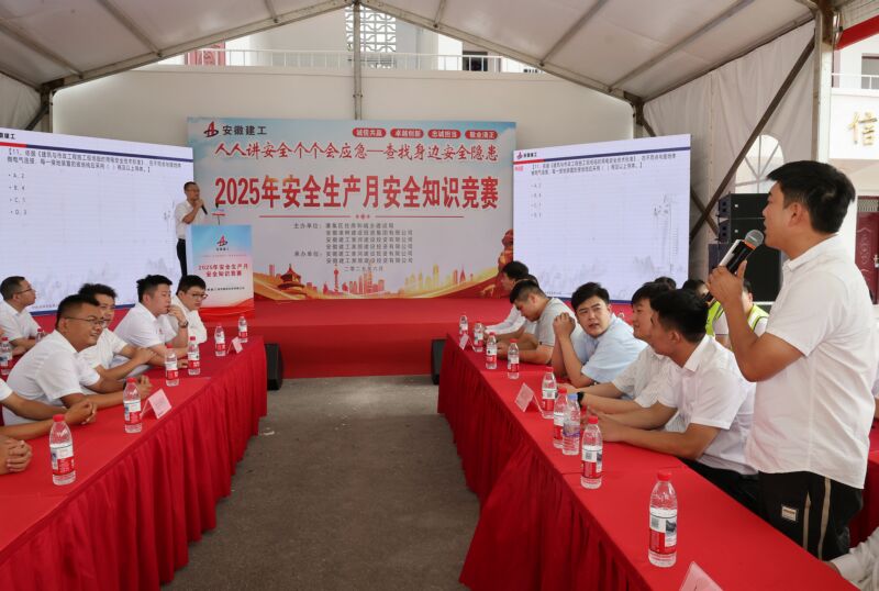 6月29日上午,潘集區(qū)住房和城鄉(xiāng)建設(shè)局、安徽淮畔建設(shè)投資集團(tuán)有限公司、安徽建工淮河建設(shè)投資有限公司聯(lián)合舉辦了2025年安全生產(chǎn)月知識(shí)競(jìng)賽活動(dòng)。來(lái)自建設(shè)施工一線和管理部門的16支代表隊(duì),圍繞《安全生產(chǎn)法》、危大工程安全管理規(guī)定、臨時(shí)用電、消防安全、高處作業(yè)、腳手架、大型機(jī)械等安全技術(shù)規(guī)范等知識(shí)點(diǎn),進(jìn)行了激烈的必答和搶答。