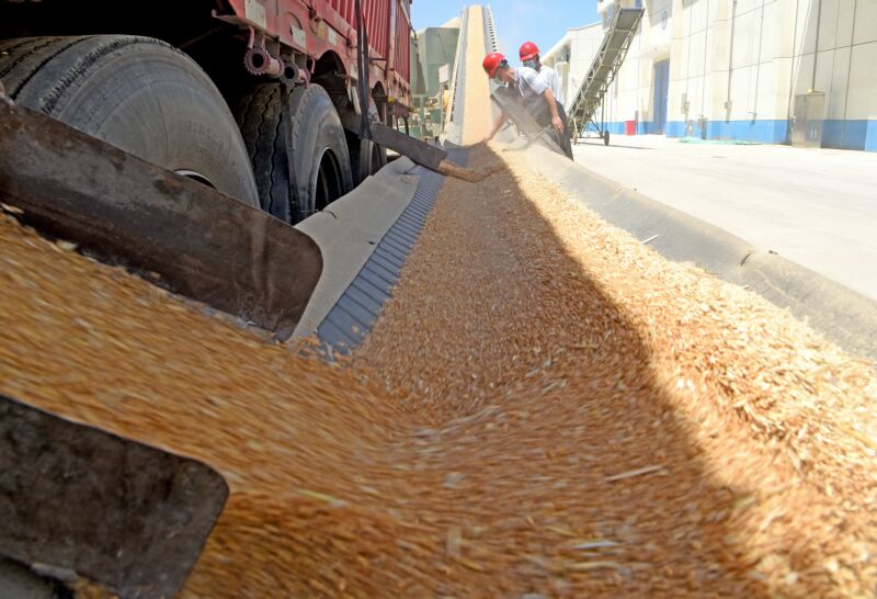 日前,淮南市羅山國家糧食儲備庫有限公司托市收購小麥入庫。自6月21日起,安徽省在省內(nèi)符合條件的地區(qū)啟動2025年小麥最低收購價執(zhí)行預(yù)案;茨鲜行←溩畹褪召弮r10個收購庫點均已開秤,各收購庫點嚴(yán)格執(zhí)行收購政策,優(yōu)化為農(nóng)服務(wù)措施,讓農(nóng)民賣“明白糧、放心糧、舒心糧”。圖為7月3日,淮南市羅山國家糧食儲備庫有限公司托市收購小麥入庫。